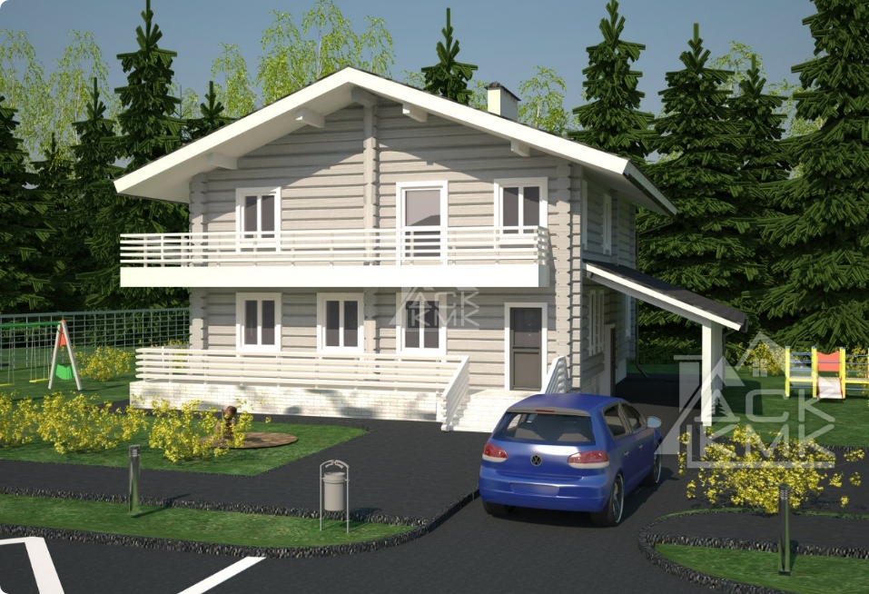 Индивидуальный одноэтажный жилой дом с мансардным этажом из клееного бруса